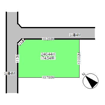 | 接道 | 北東 4m(幅員) 公道 北西 4m(幅員) 公道 |